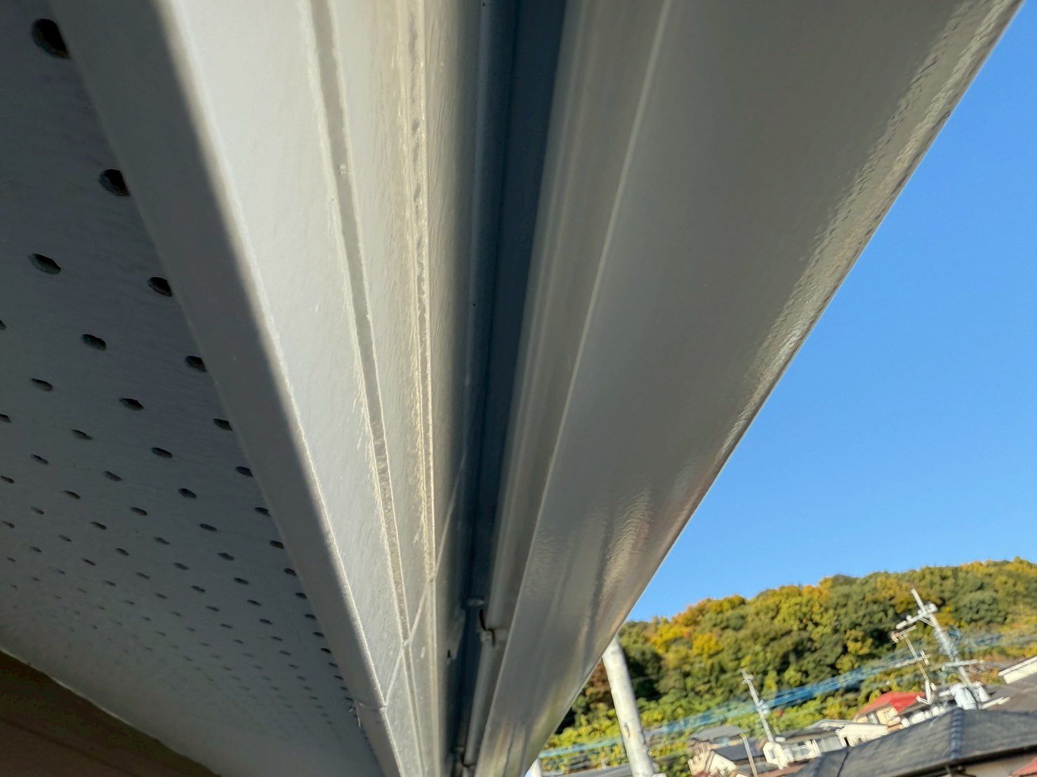 外壁・破風板・雨樋の隙間塗り込み作業:きれいに仕上がりました。