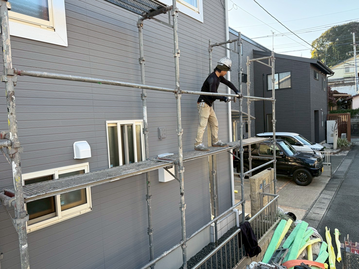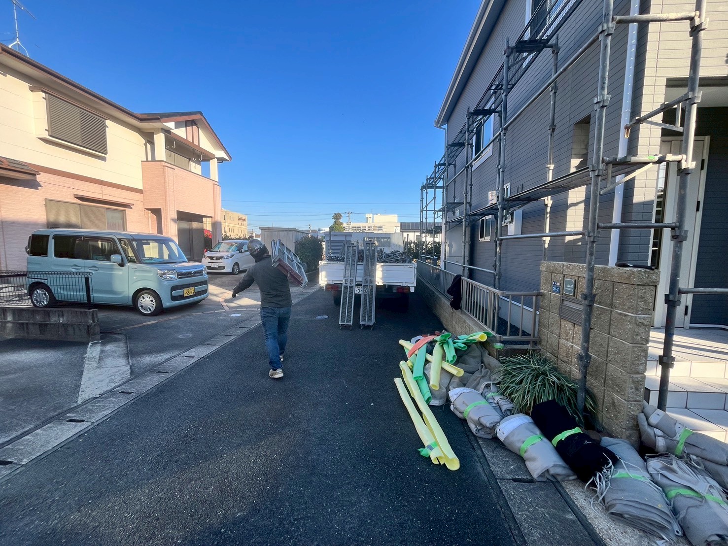 外壁・架設足場解体・片付け・積み込み・運搬の作業です。