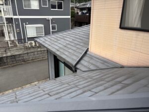 外壁・小庇上部・KF無機4フッ化フッ素樹脂コーヒーブラウンの施工前です。