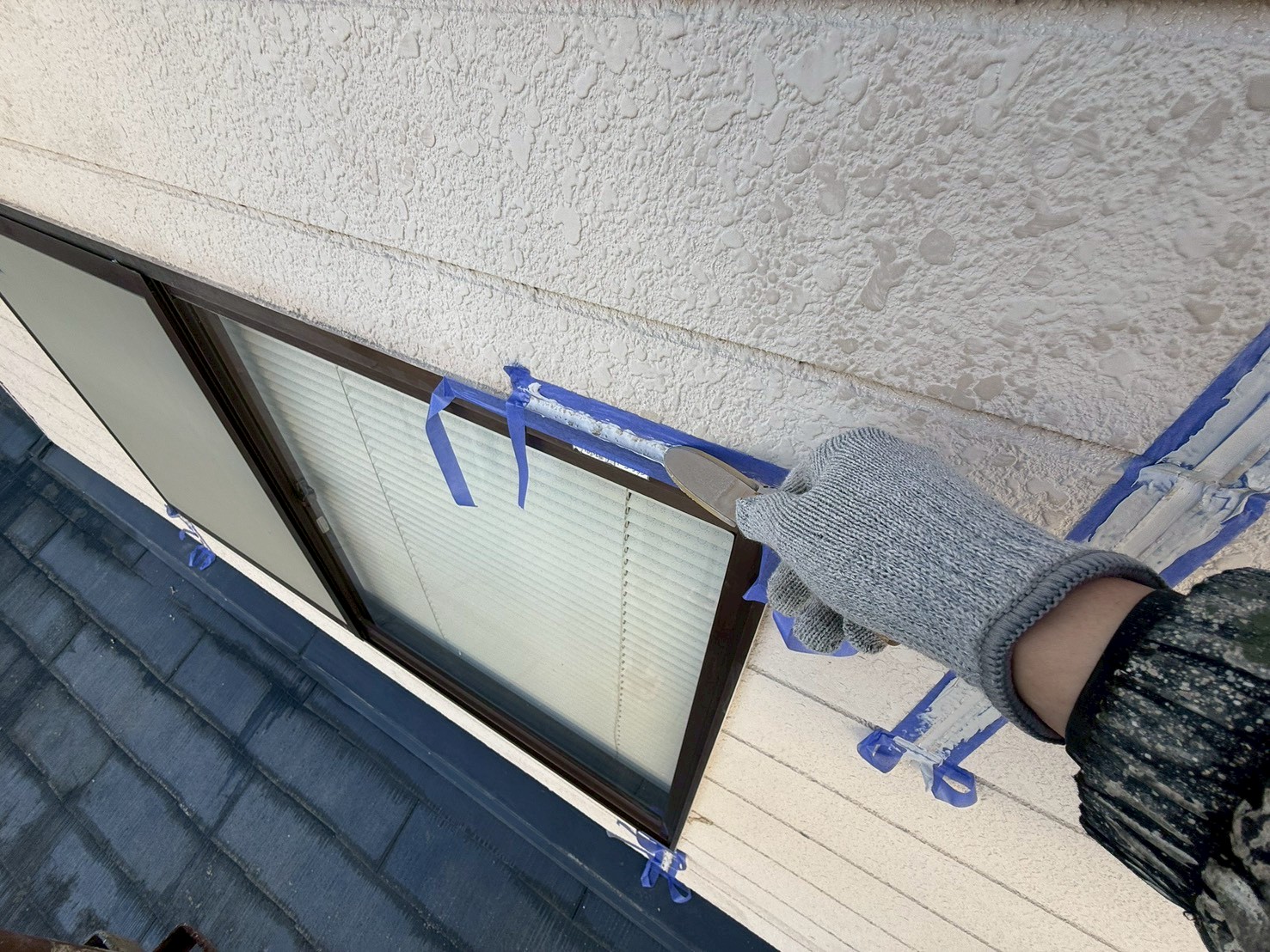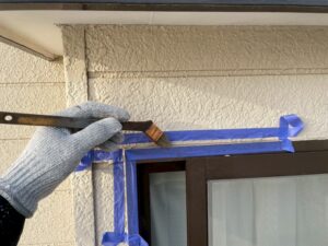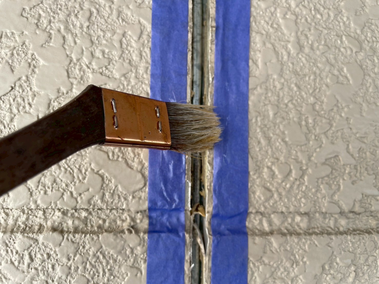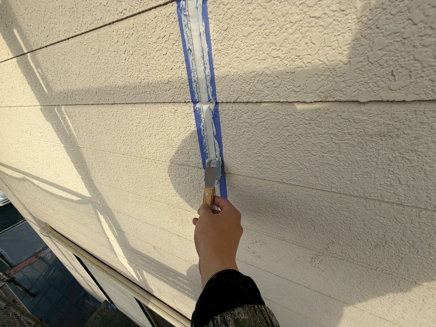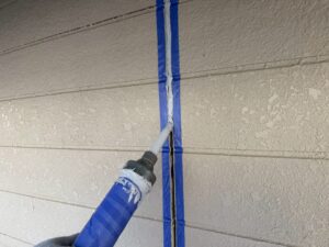 本日の作業は、外壁・旧コーキング専用テープ貼り・プライマー・打ち替えの施工です。