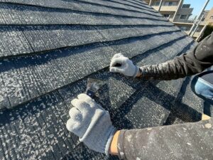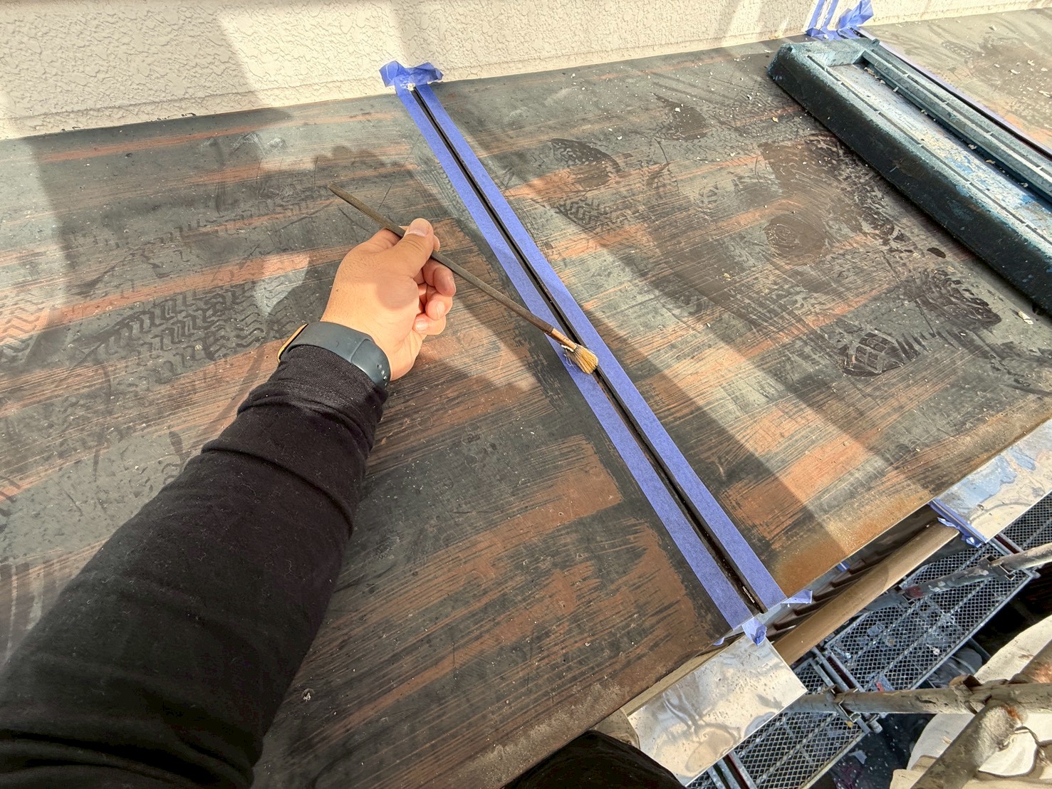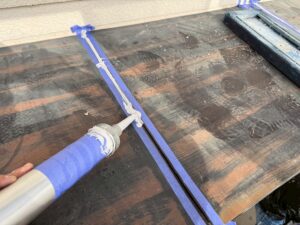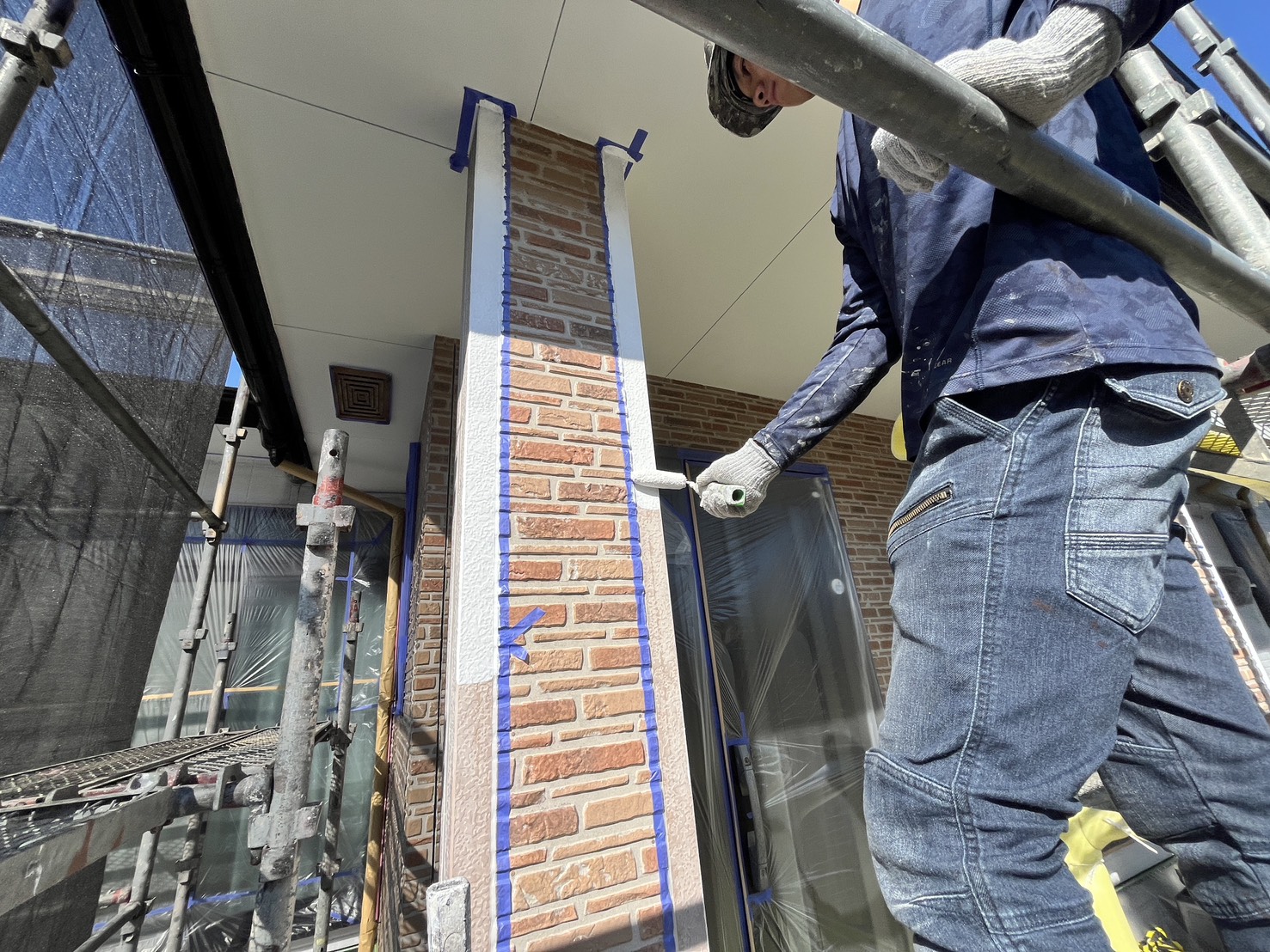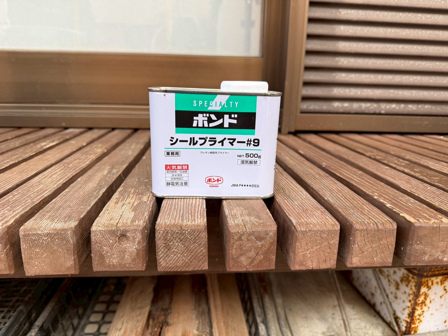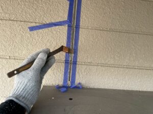 本日の作業は、外壁・旧コーキング専用テープ貼り・プライマー・打ち替えの施工です。
