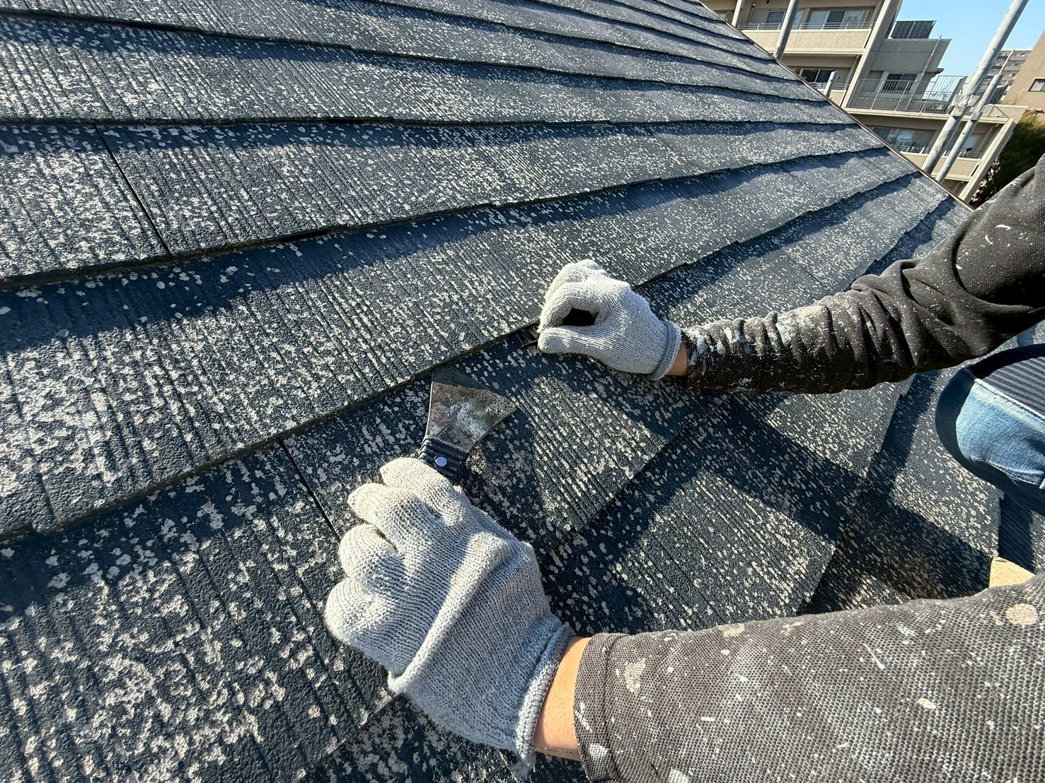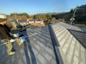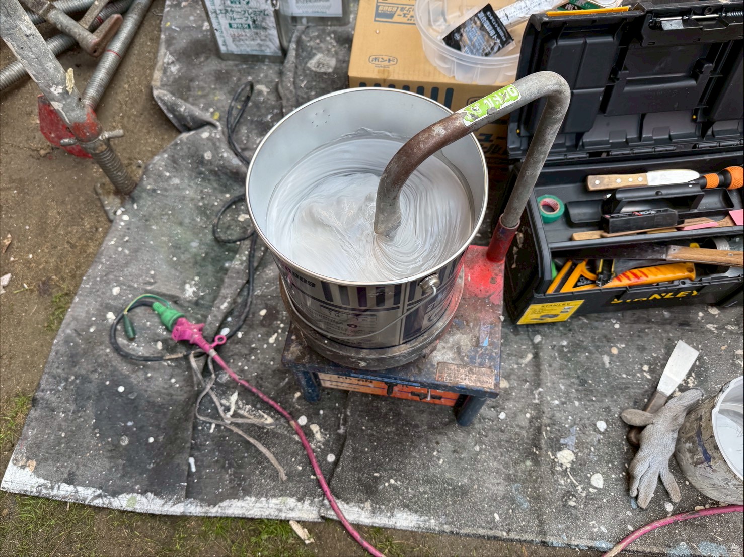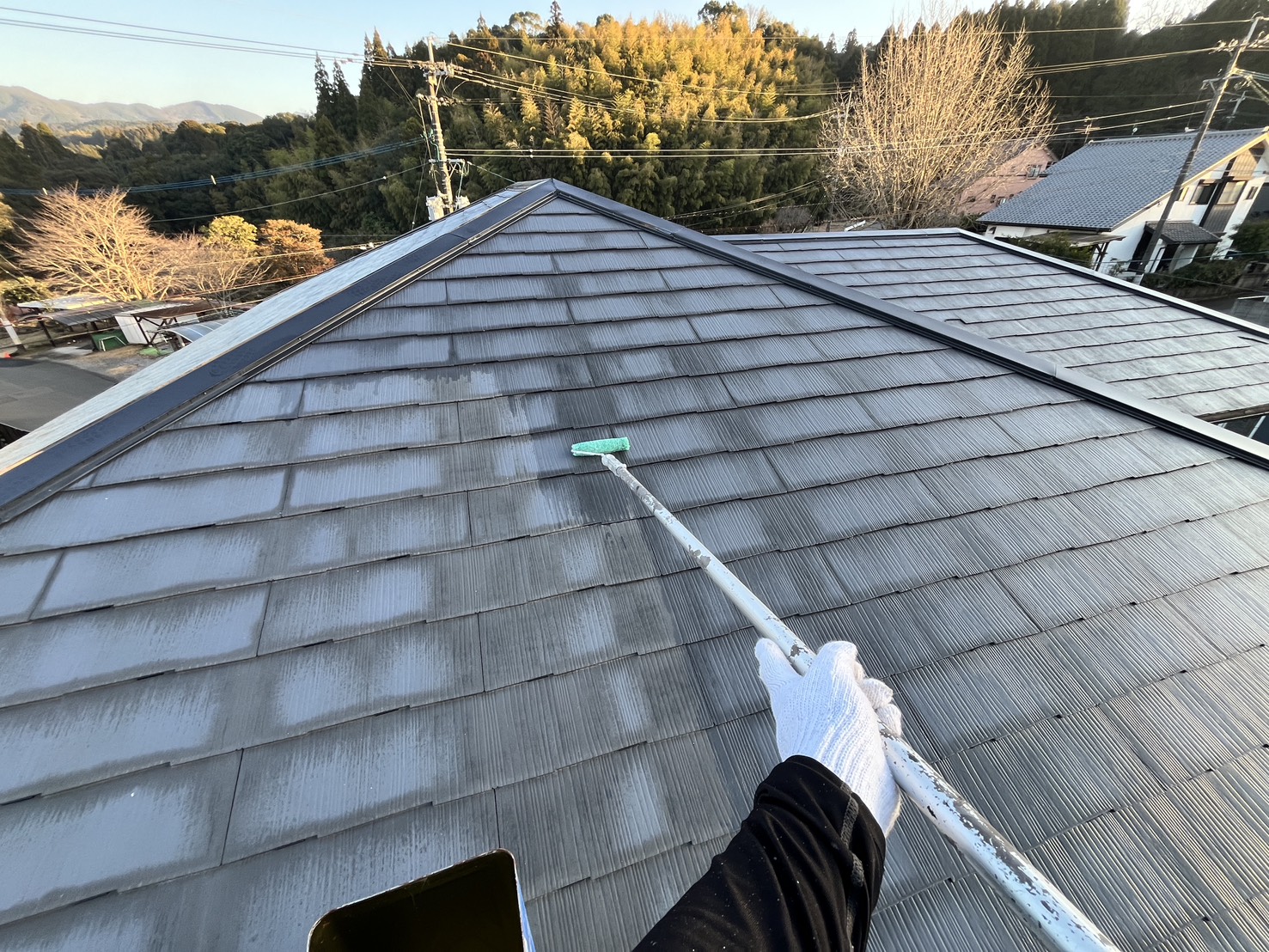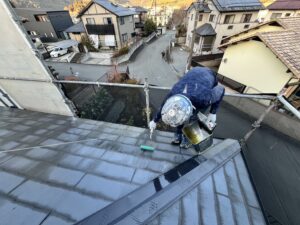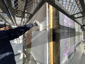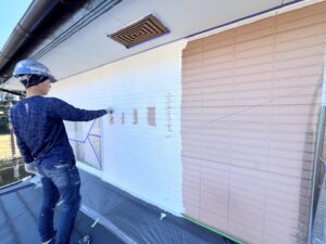 本日の作業は、外壁・養生と下地処理(下塗り)の施工です。