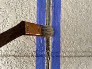 外壁・壁面目地・旧コーキング材撤去作業後、ボンドブレーカーが入っていない箇所は、きれいに貼り込みます。