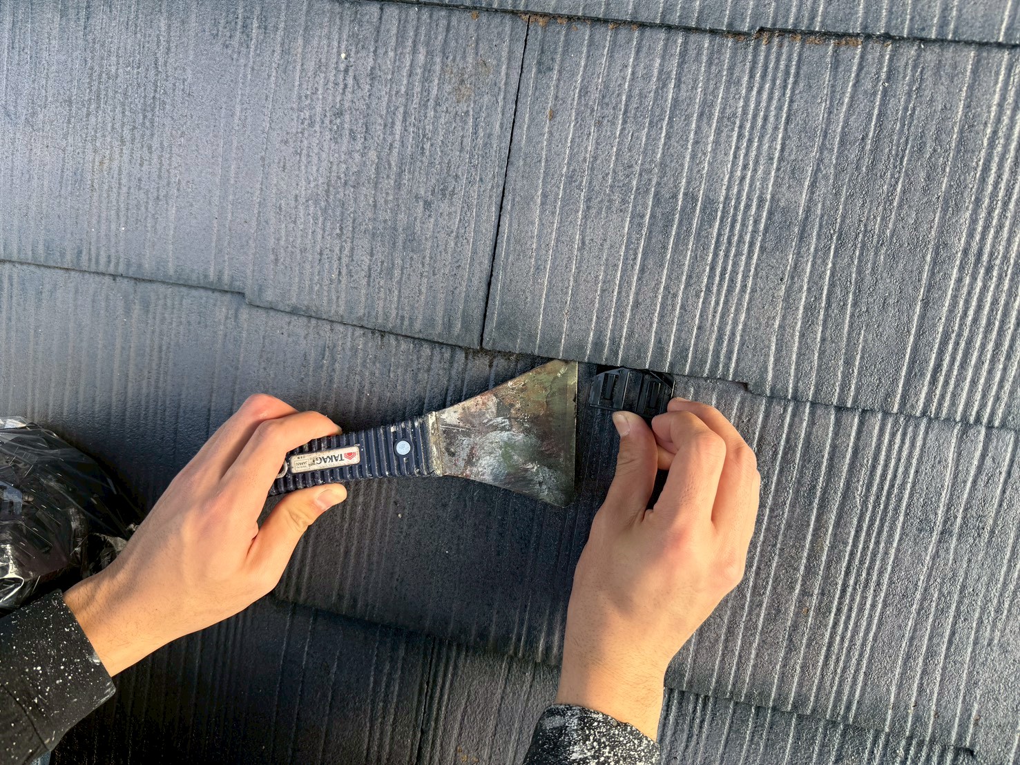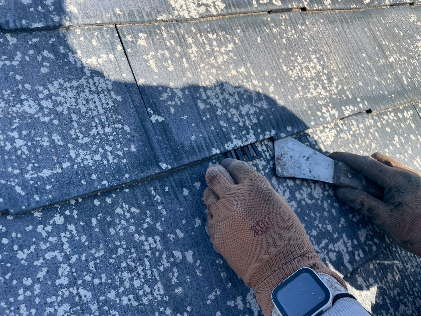 外壁・壁面目地・③旧コーキング材撤去作業です。