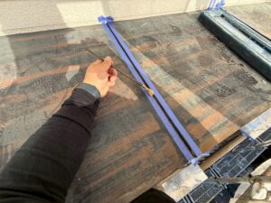 外壁・壁面目地・旧コーキング材撤去作業:両サイドをカッターで切り込みます。