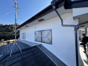 外壁・1F軒天・上塗り仕上げ・ケンエースG-Ⅱ(防カビ剤入り)の施工:きれいに仕上がりました。