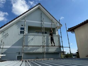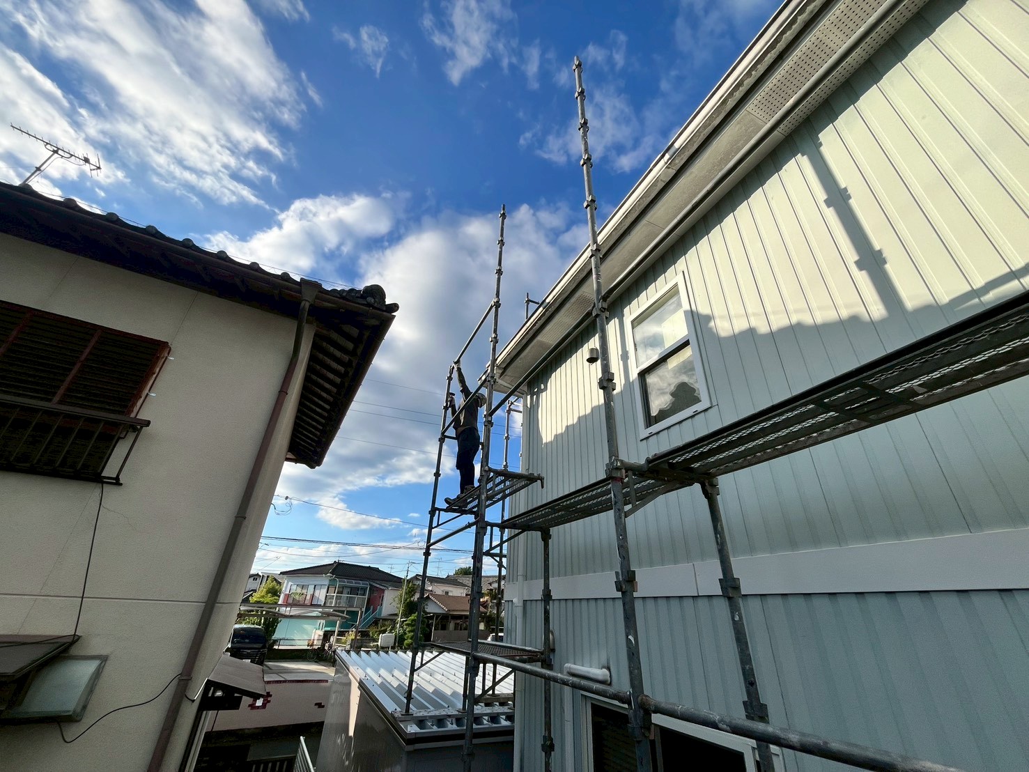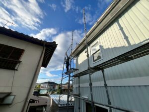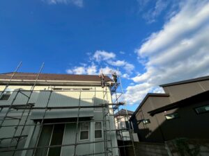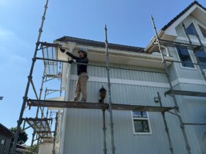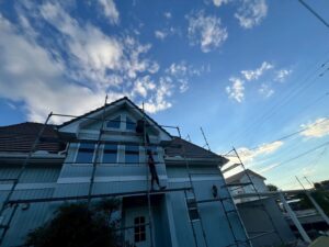 本日の作業は、外壁・ラジカル塗料:掃除、手直し、確認と付帯部・屋根の施工です。