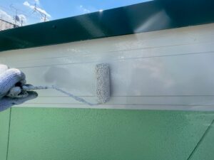 屋根・1F小庇部、上塗り仕上げ:ラジカル塗料ローラー塗り施工です。