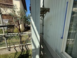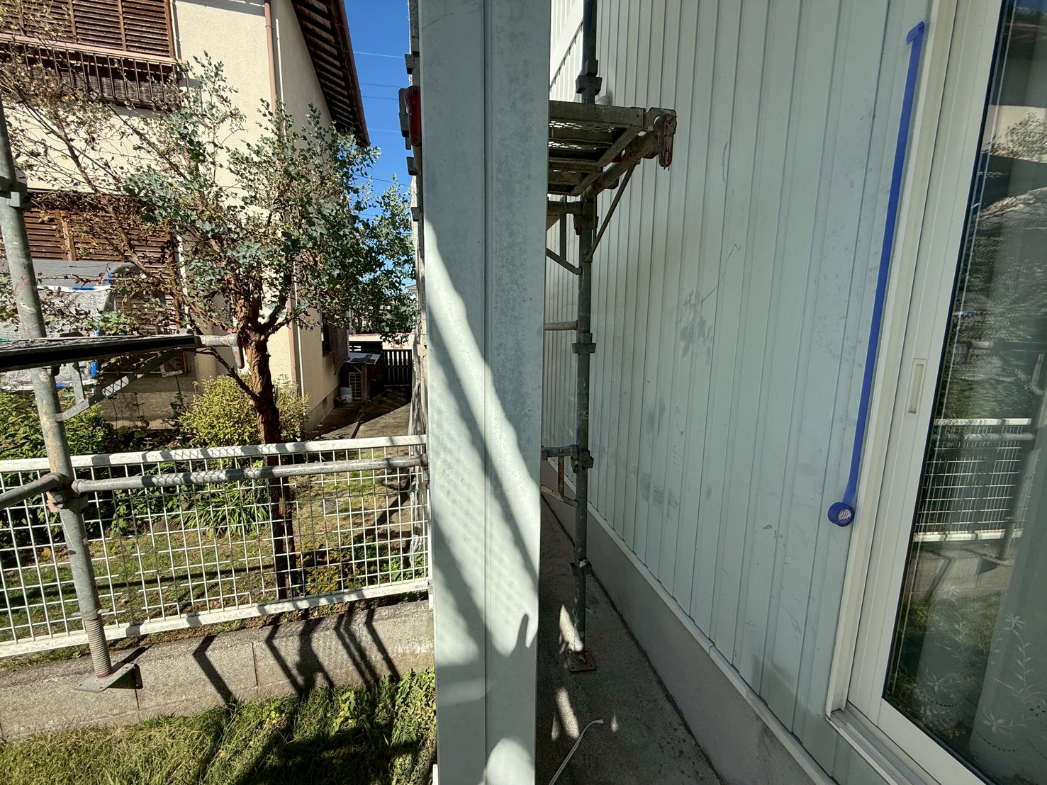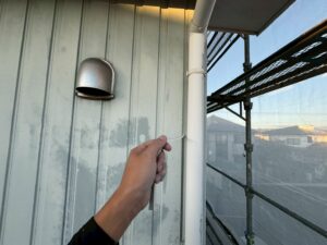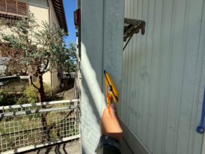 本日の作業は、外壁・旧コーキング材撤去とテープ養生施工です。