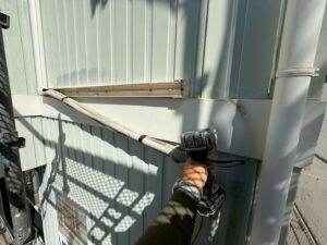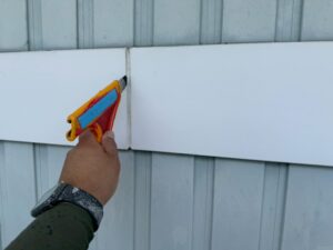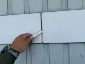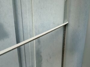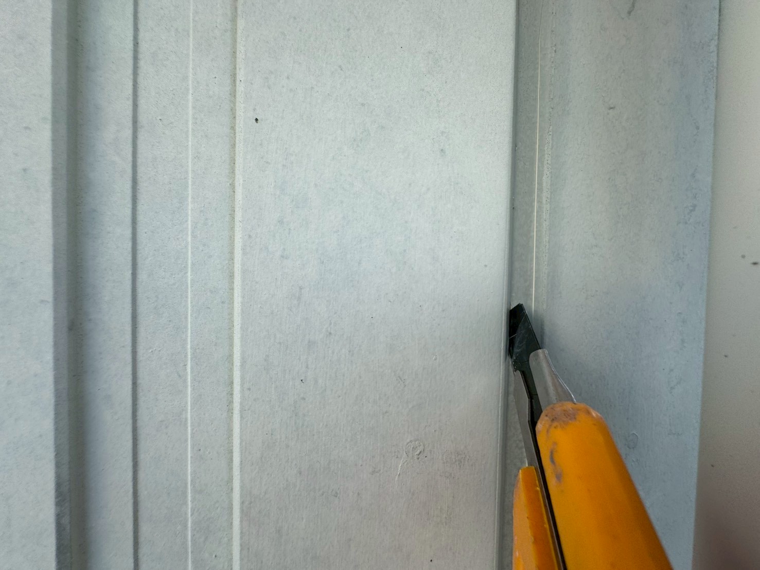 外壁・BDのつなぎ目の旧コーキング材撤去作業:専用カッターで切り込みます。