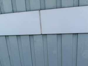 外壁・中間部1Fと2F(帯部)旧コーキング材撤去作業前です。