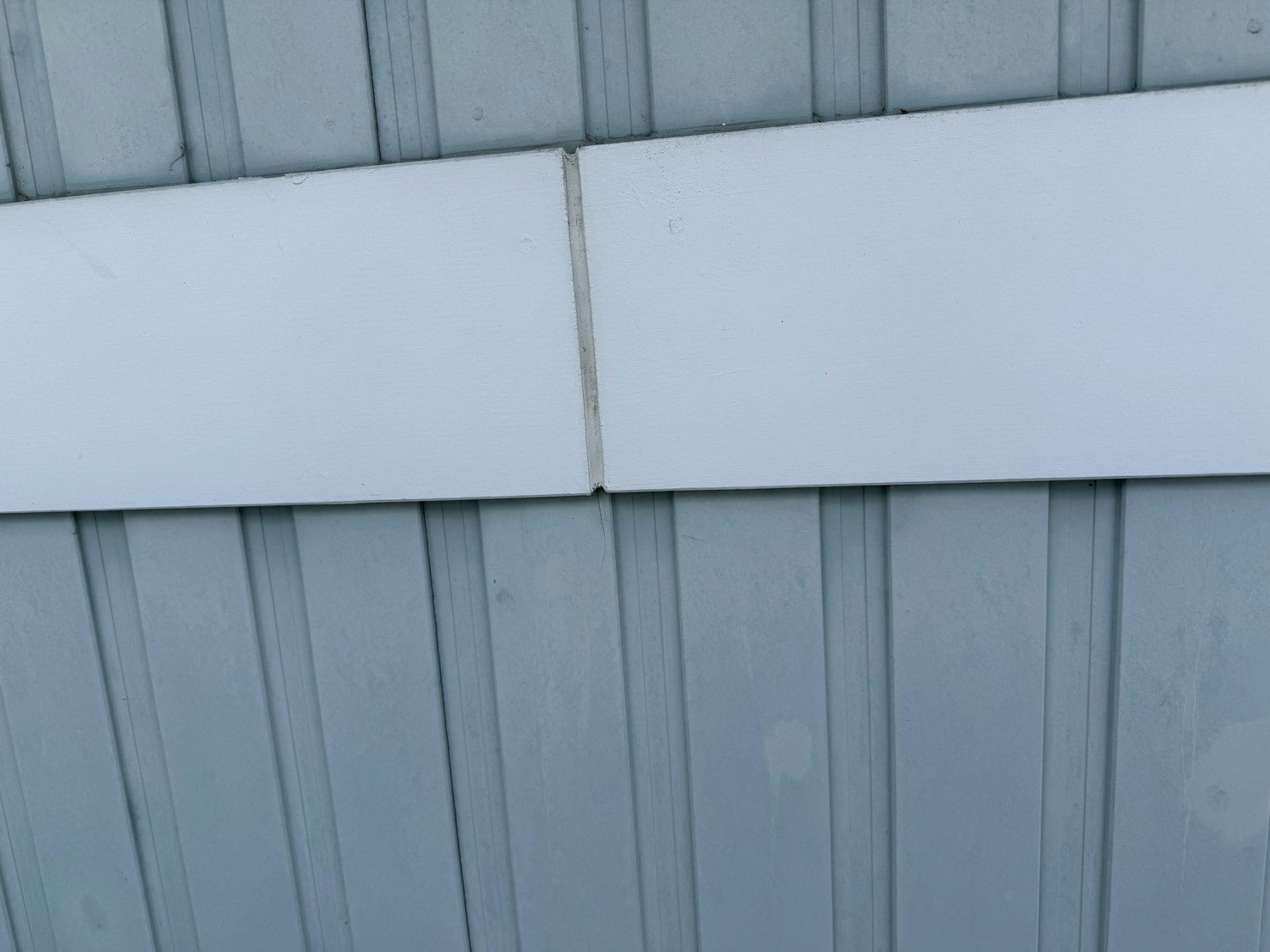 外壁・中間部1Fと2F(帯部)旧コーキング材撤去作業:きれいに剥ぎ取ります。