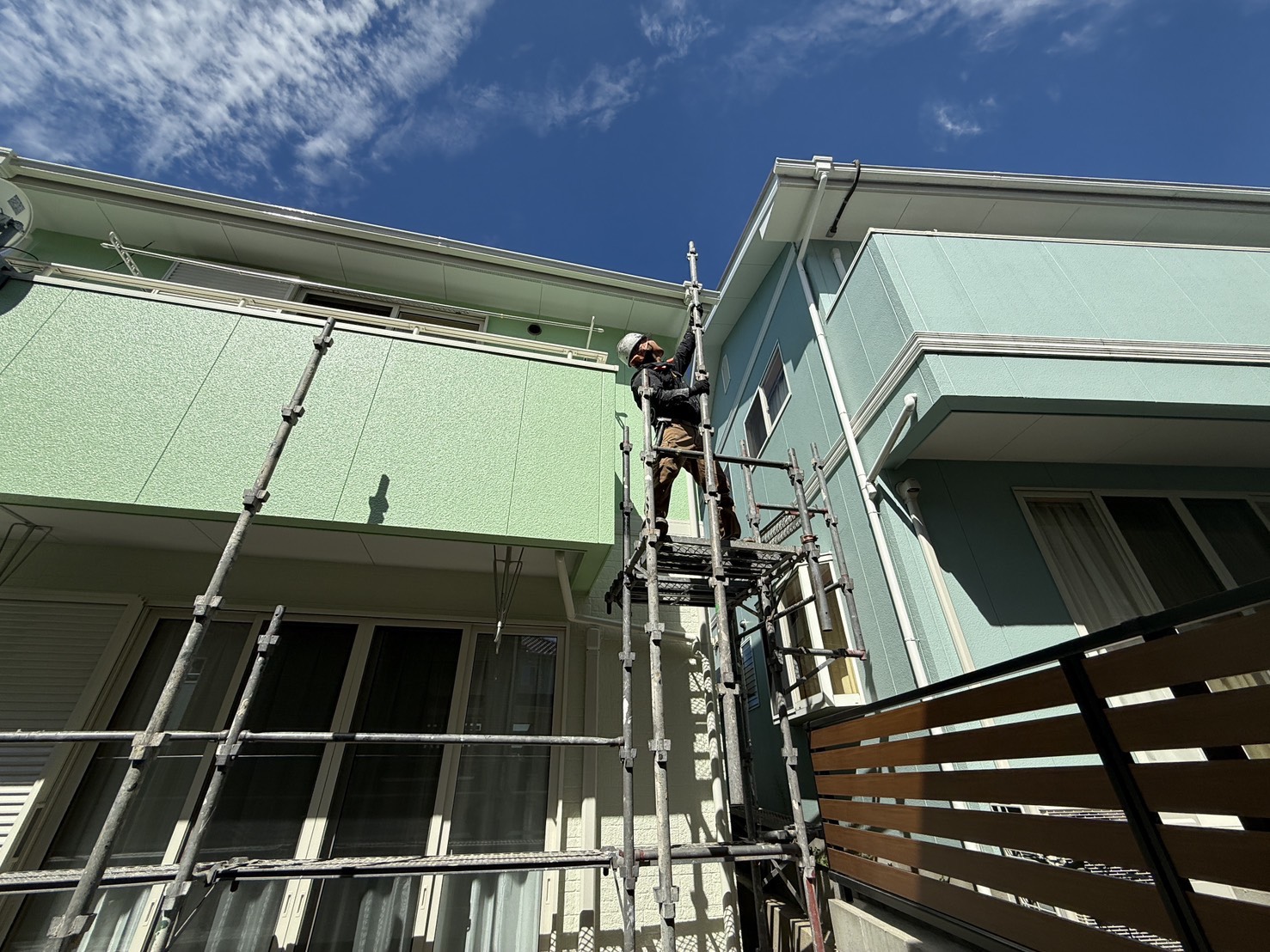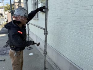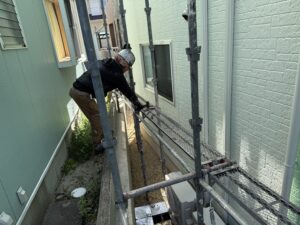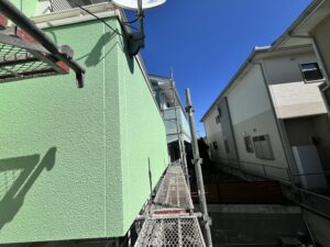外壁・屋根・付帯部:最終検査確認後、架設足場解体施工です。