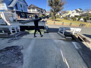 外壁・屋根・付帯部・最終検査確認後、架設足場解体施工:運搬積み込み作業です。