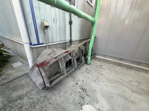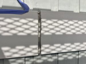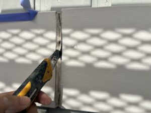 本日の作業は、外壁・専用テープ養生と旧コーキング材撤去作業です。