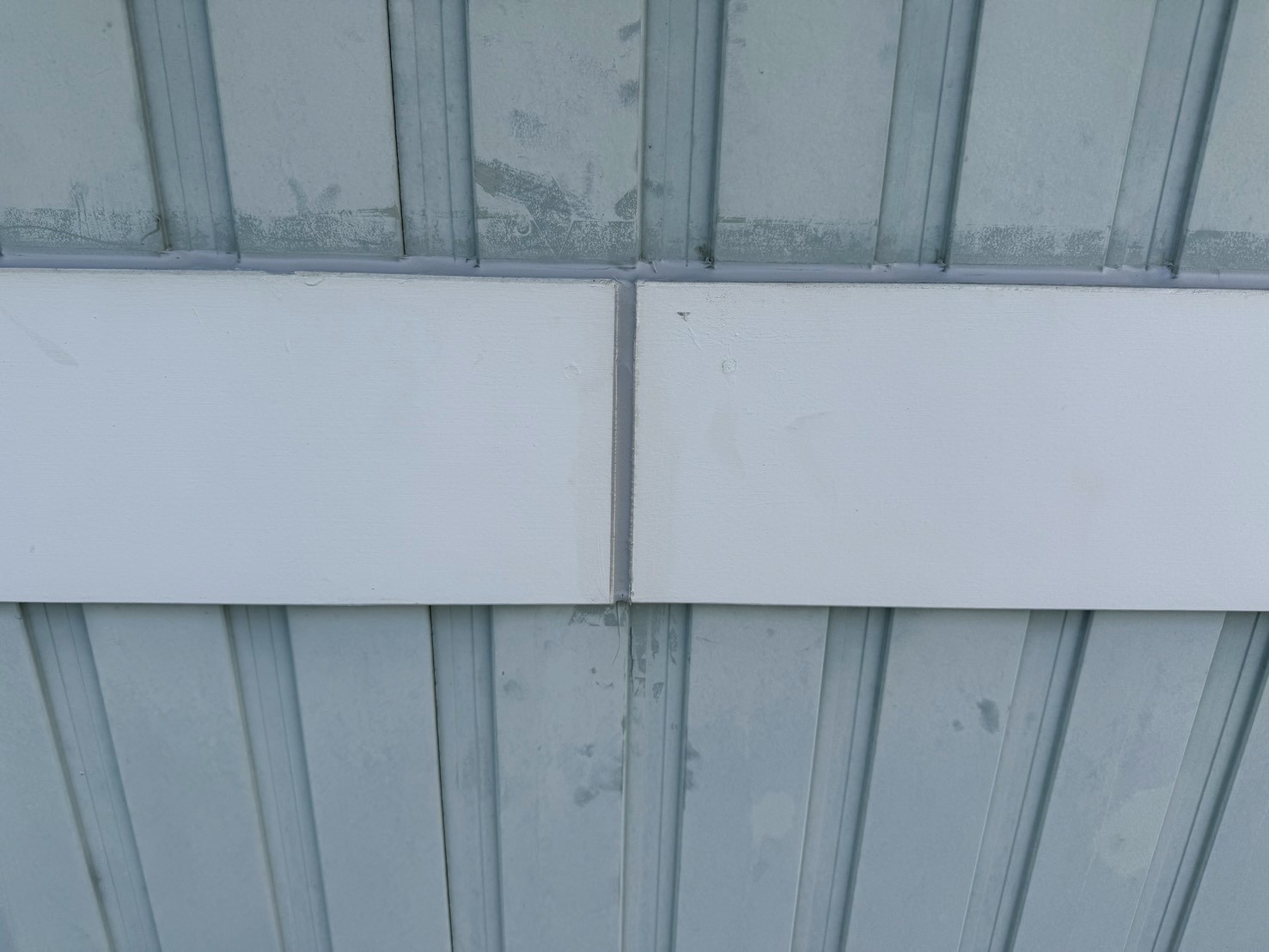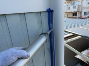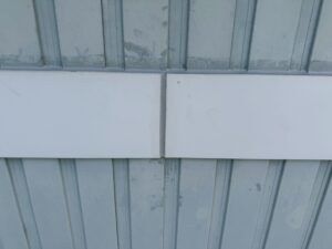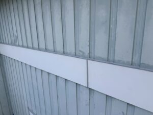外壁・コーキング打ち替え施工:養生テープ撤去、帯のつなぎ目・仕上がりです。