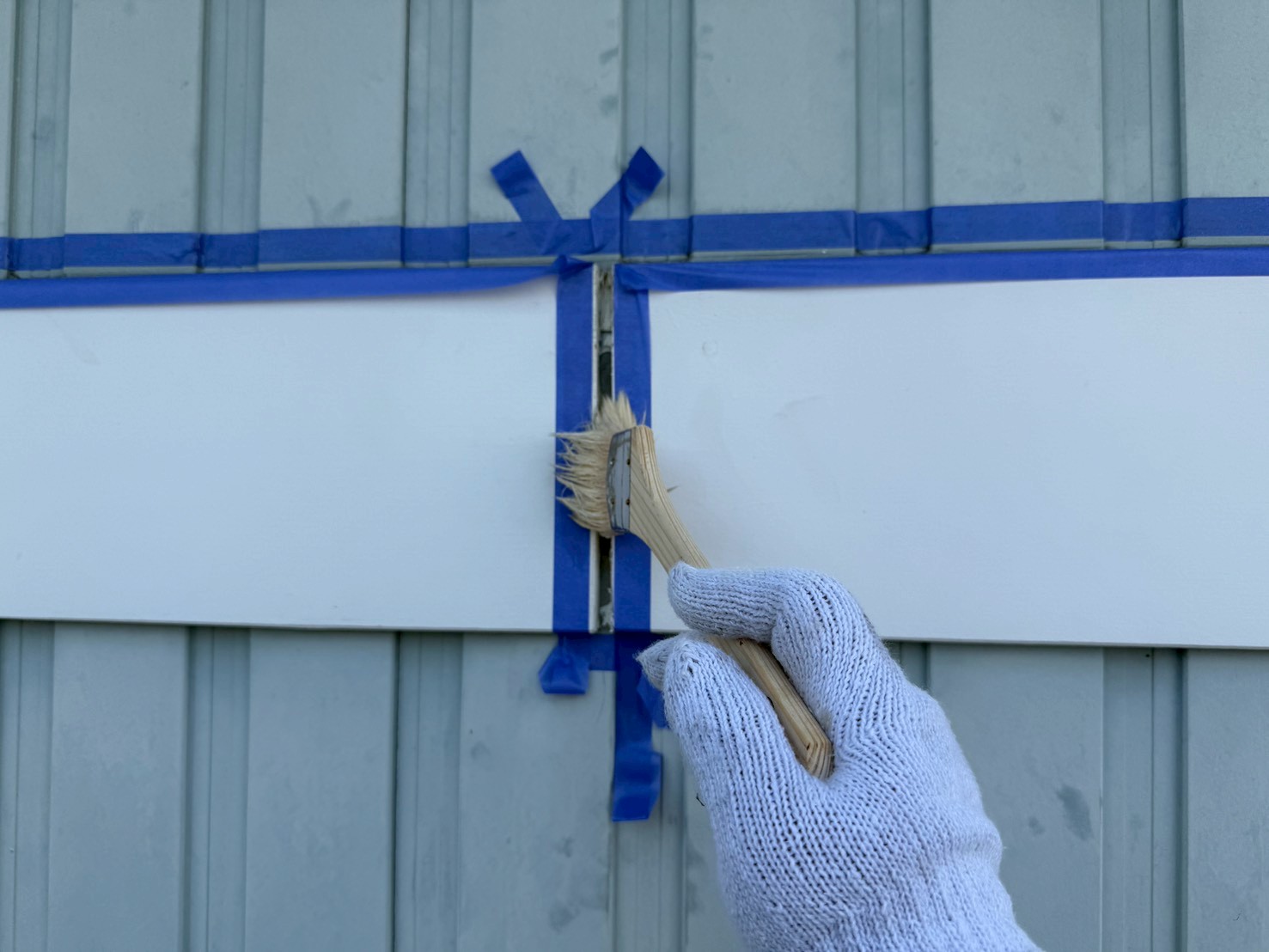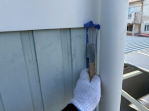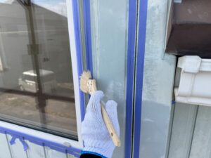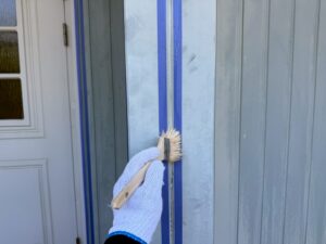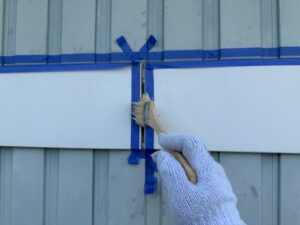 外壁・専用プライマー(接着剤)の刷毛塗り施工です。