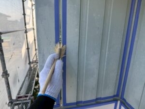 本日の作業は、外壁・旧コーキング材撤去・打ち替え・確認施工です。