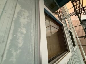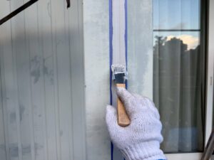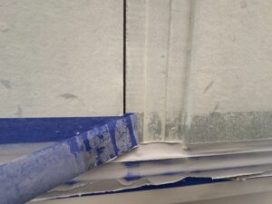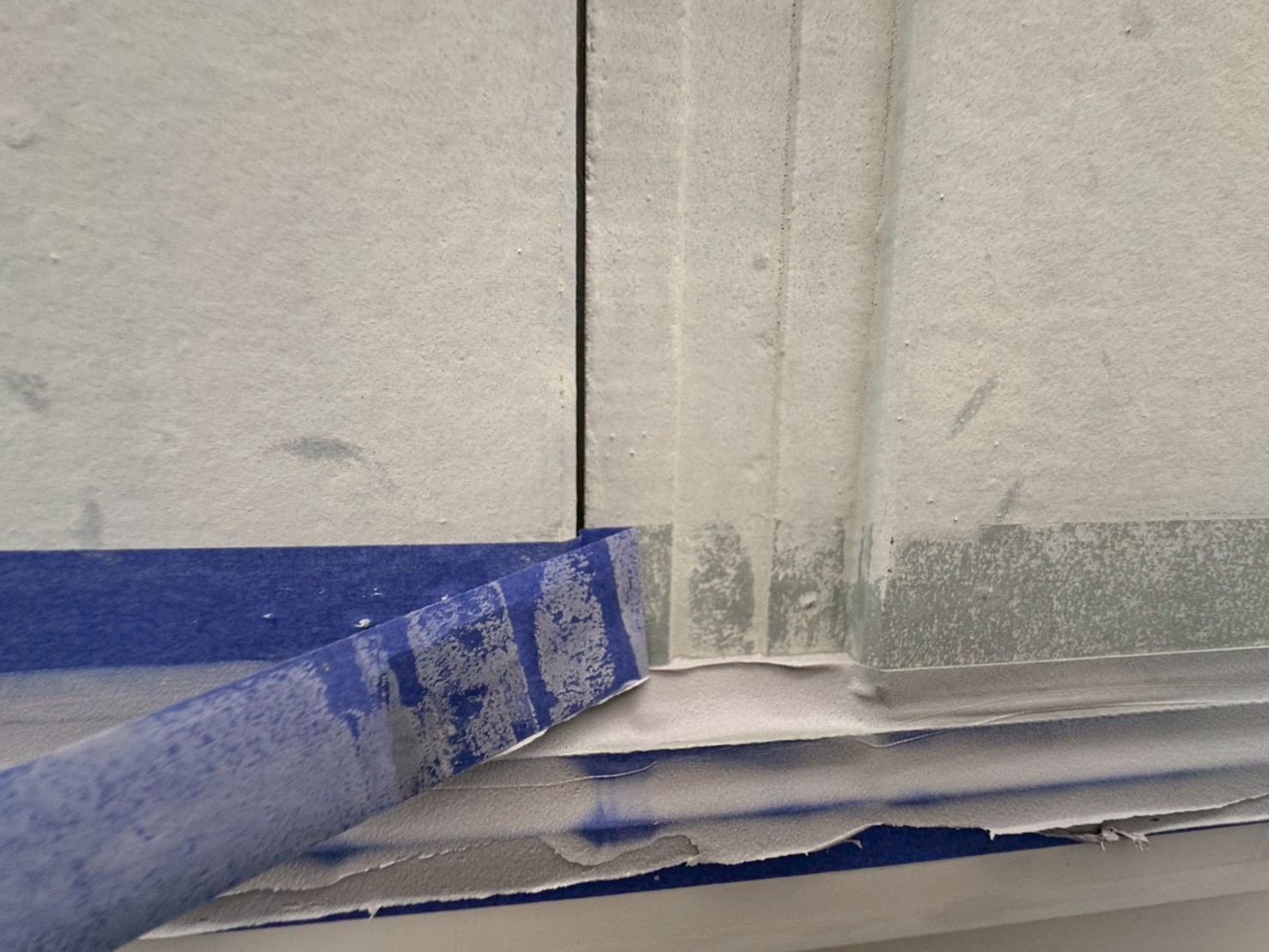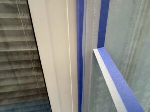 外壁・業務用コーキング材:施工後、養生テープの撤去作業です。