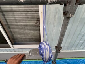 外壁・業務用コーキング材:注入・専用ヘラ抑えの施工です。