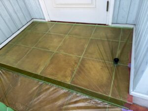 外壁・玄関廻りタイル面・ノンスリップシート(滑らんシート)の施工です。