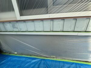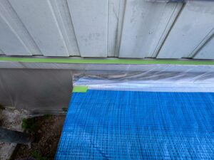 外壁・勝手口廻り・養生施工:きれいに貼り込みます。