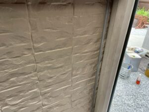 外壁・下地処理(下塗り)1F柱:KFスーパーウレアコート・ローラー塗り施工です。