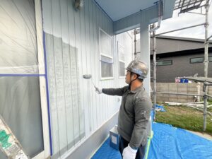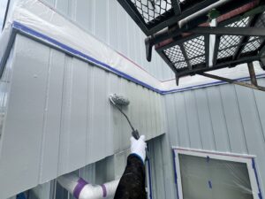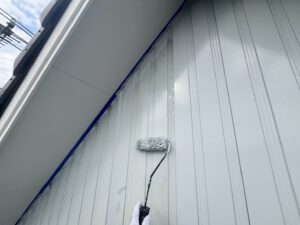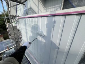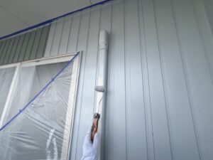 外壁・下地処理(下塗り):KFスーパーウレアコート・ローラー塗り施工です。