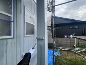 本日の作業は、外壁・養生と下地処理・付帯部の施工です。