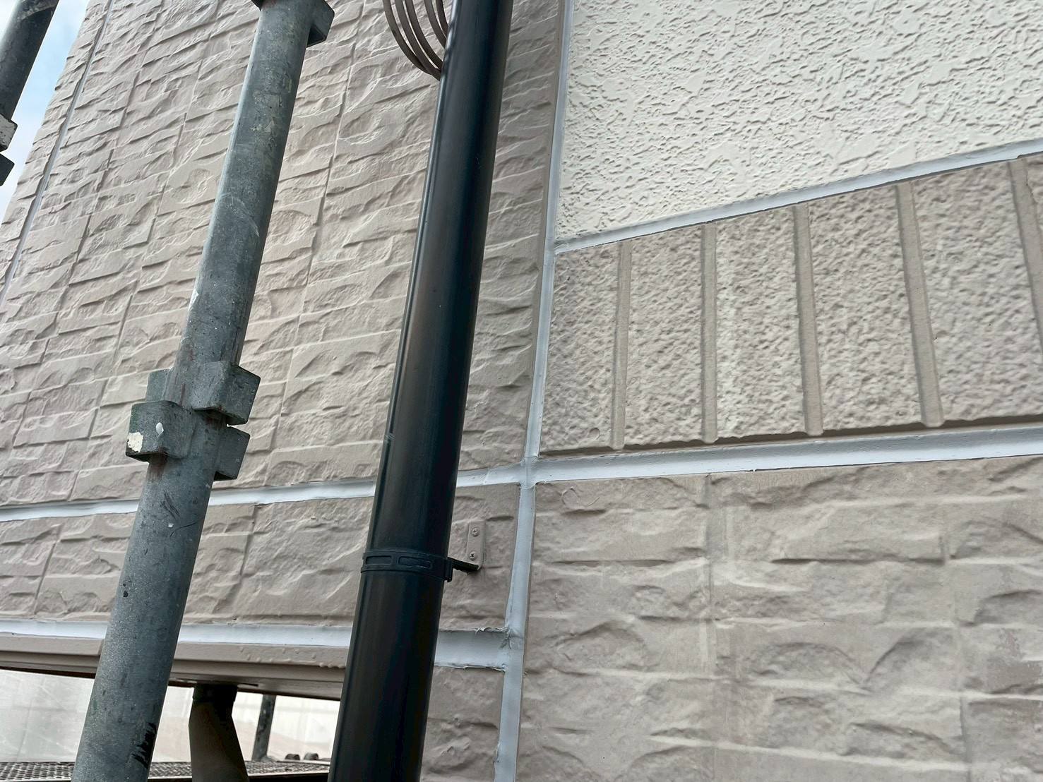 外壁・業務用コーキング材打ち替え施工:パイプ類、縦目地の仕上がりです。