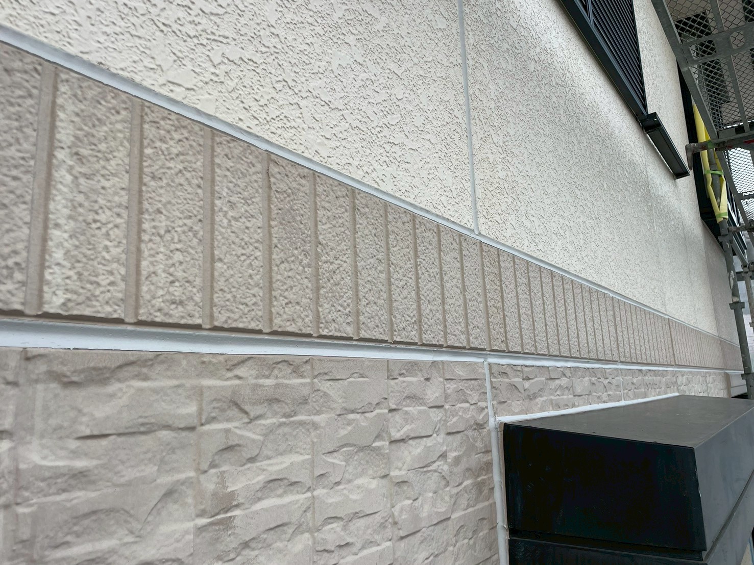 外壁・業務用コーキング材打ち替え施工:帯廻りの仕上がりです。