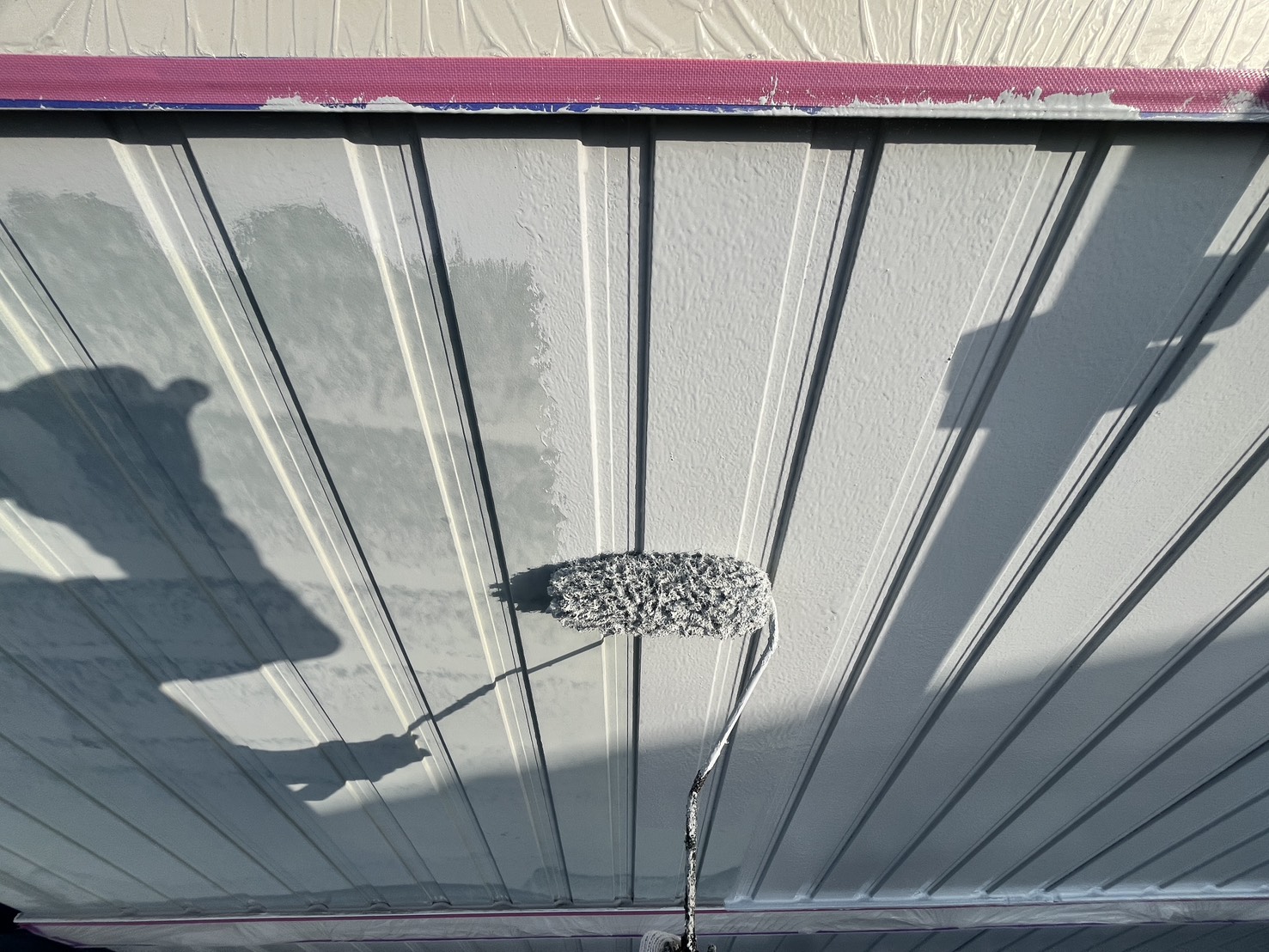 外壁・下地処理(下塗り):KFスーパーウレアコート・ローラー塗り施工です。
