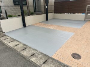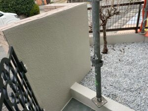 外部・ブロック塀・プレミアム無機(指定色)の上塗り仕上げ施工:駐車場内部廻りの仕上がりです。