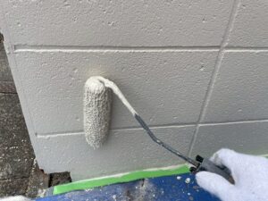 外部・ブロック塀・プレミアム無機(指定色)の上塗り仕上げ施工です。