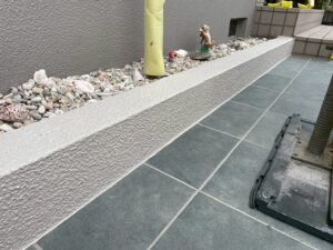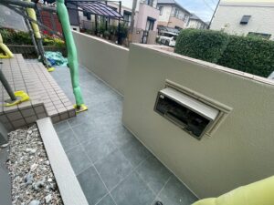 外部・ブロック塀・プレミアム無機(指定色)の上塗り仕上げ施工:通路廻りの仕上がりです。