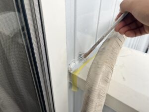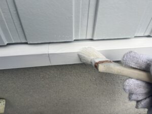 外部・ブロック塀・プレミアム無機(指定色)の上塗り仕上げ施工:引き戸廻りの仕上がりです。
