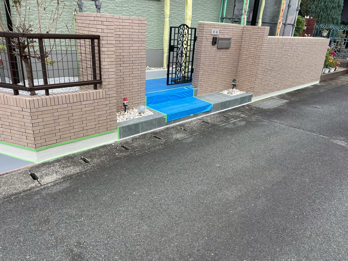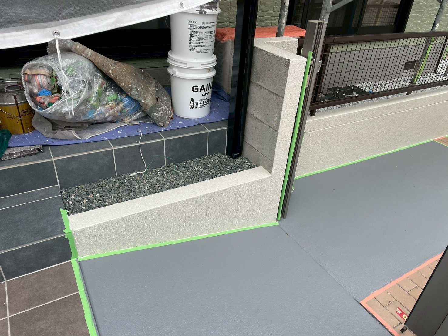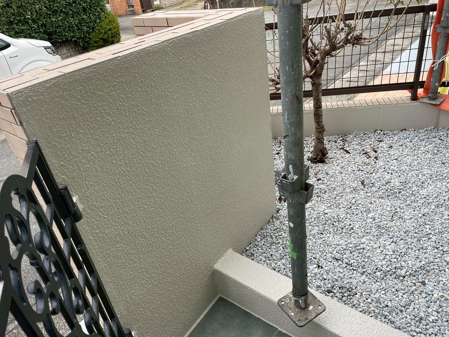 外部・ブロック塀・プレミアム無機(指定色)の上塗り仕上げ施工:通路廻りの仕上がりです。