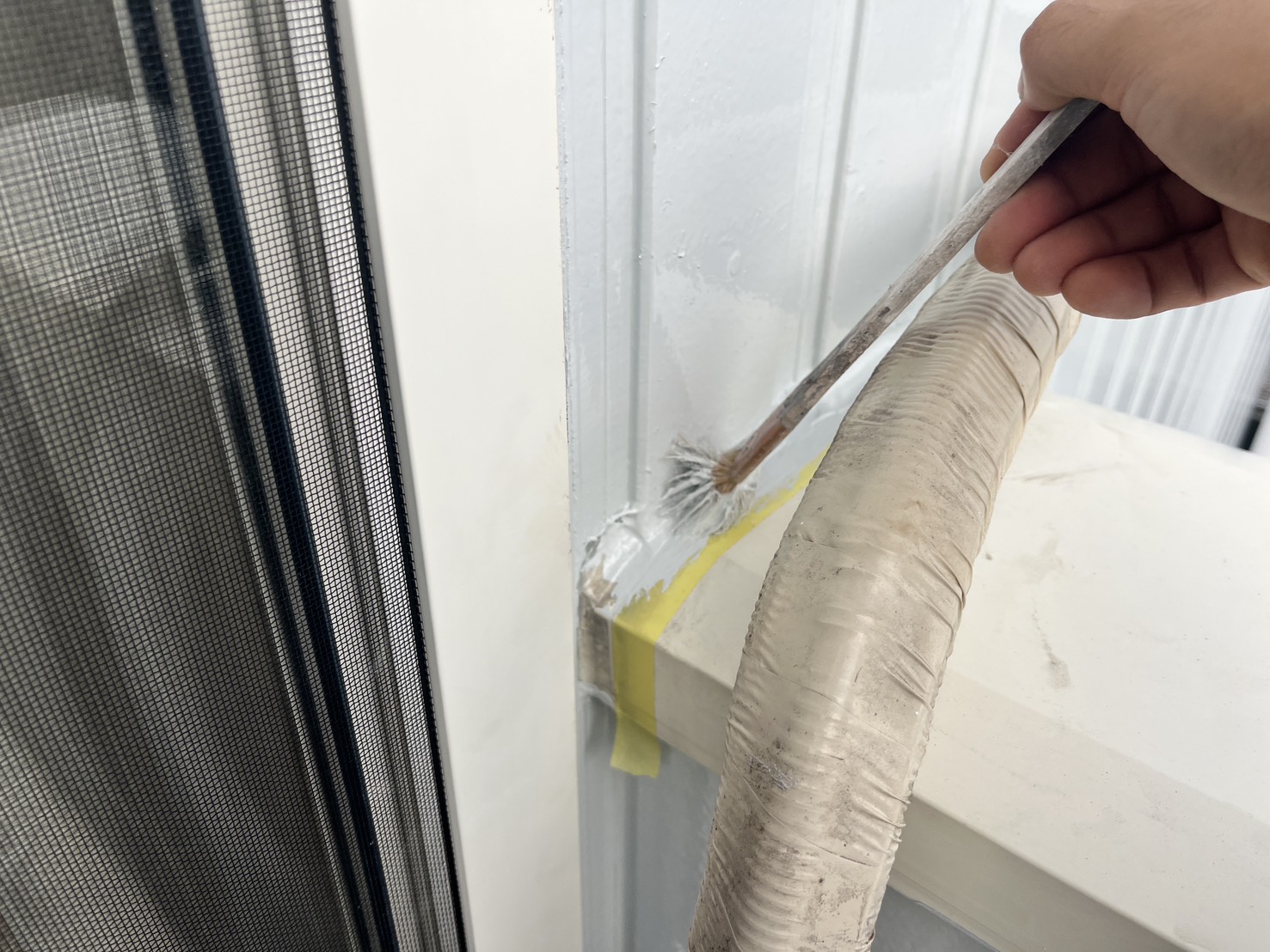 外壁・ベランダ笠木・コーキング処理跡、補修塗装施工です。