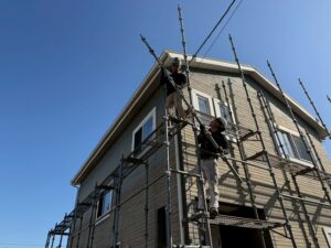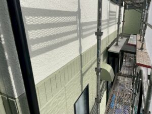 本日の作業は、外壁・確認仕上げと付帯部の確認仕上げ施工です。