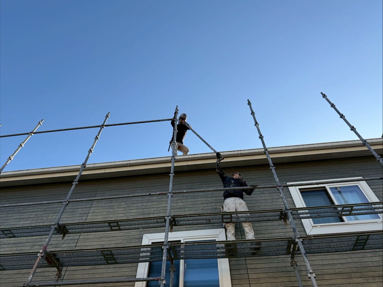 本日の作業は、外壁・確認仕上げと付帯部の確認仕上げ施工です。