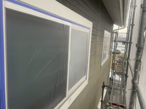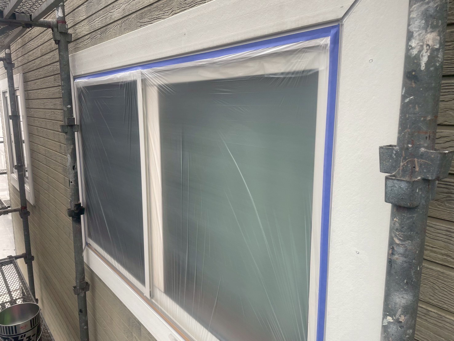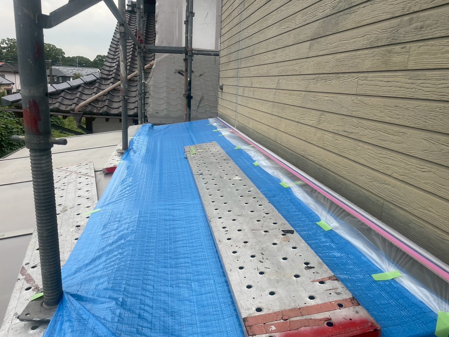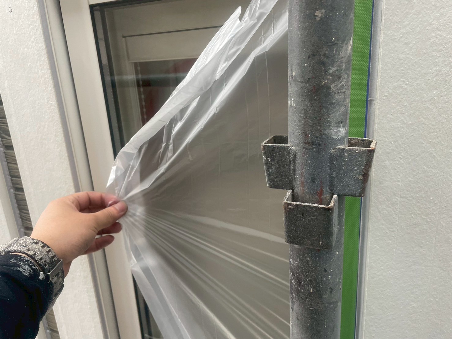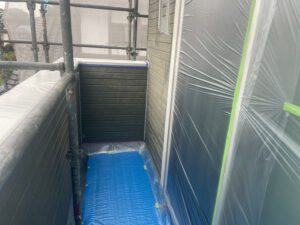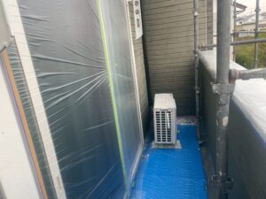 外壁・2Fベランダ廻り(床面)の養生貼り施工です。