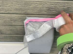 外壁の養生とは?:汚してはいけない物や大切な物(植物)に、しっかりビニールで養生(保護)します。