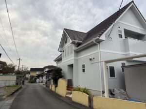 外壁・2F壁面・最終検査確認後、玄関道路側の架設足場解体施工後です。