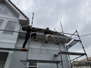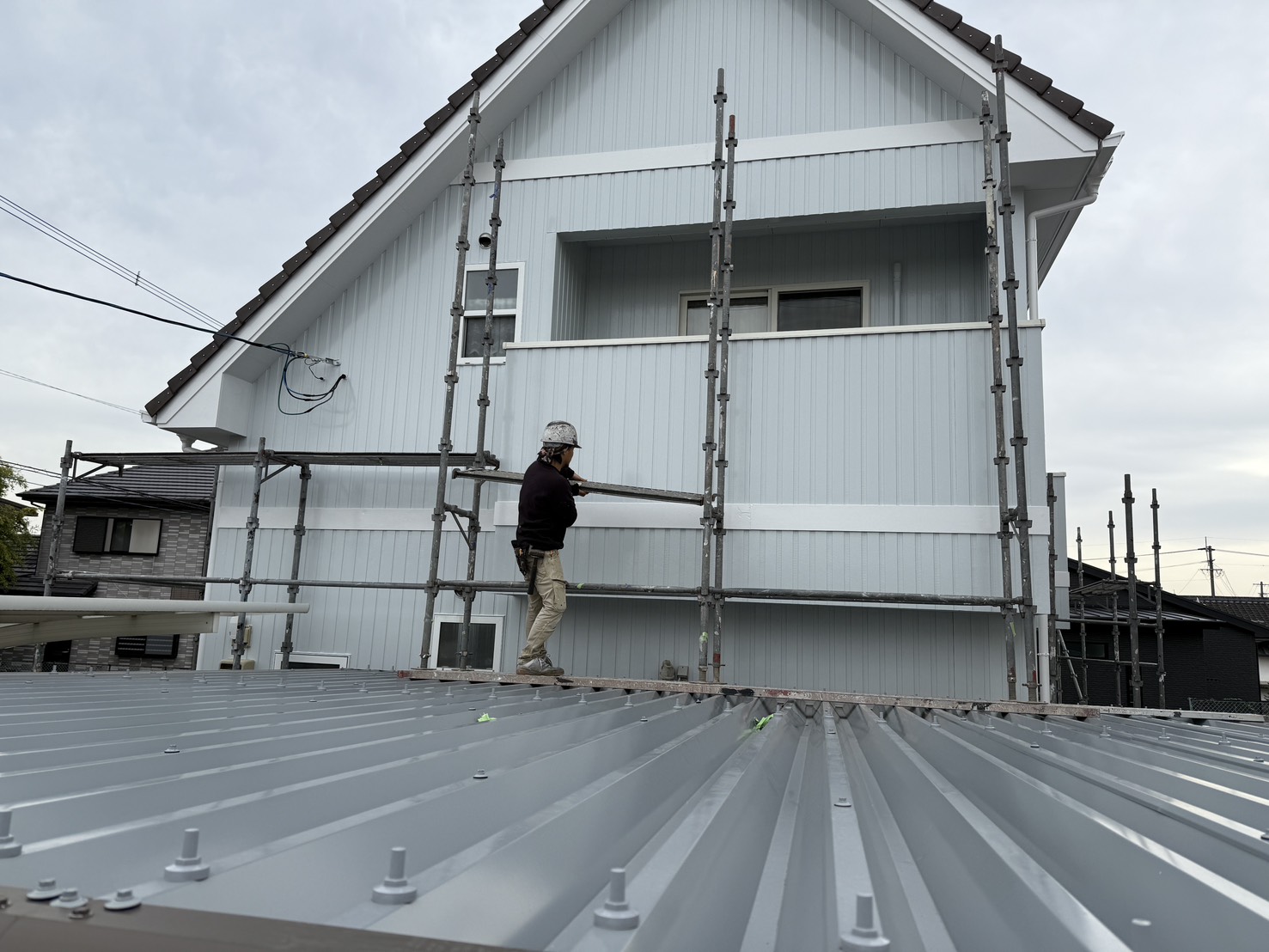 外壁・2F壁面・最終検査確認後、東面側の架設足場解体施工後です。