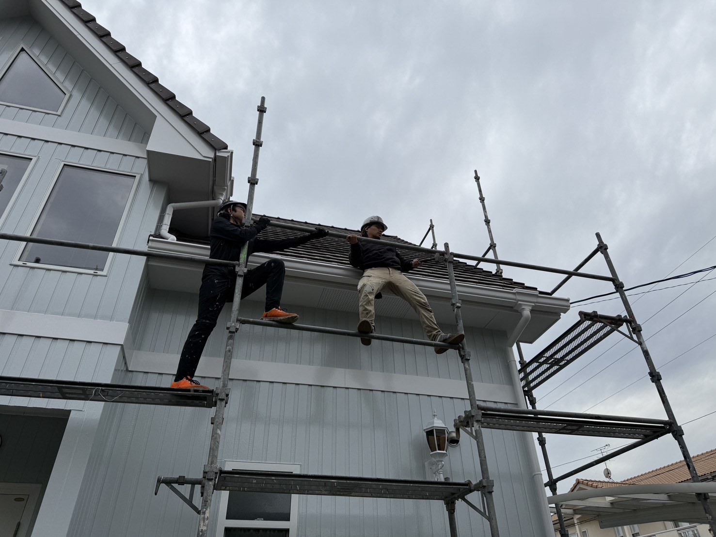 外壁・2F壁面・最終検査確認後、西面側の架設足場解体施工です。