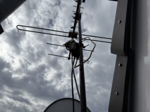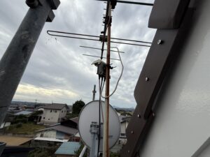 屋根・テレビアンテナ・センター柱の施工:無機フッ素樹脂の施工です。