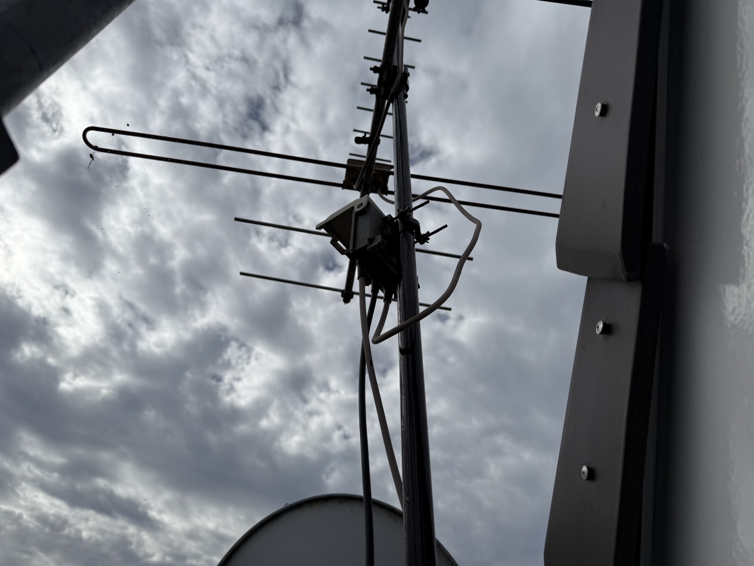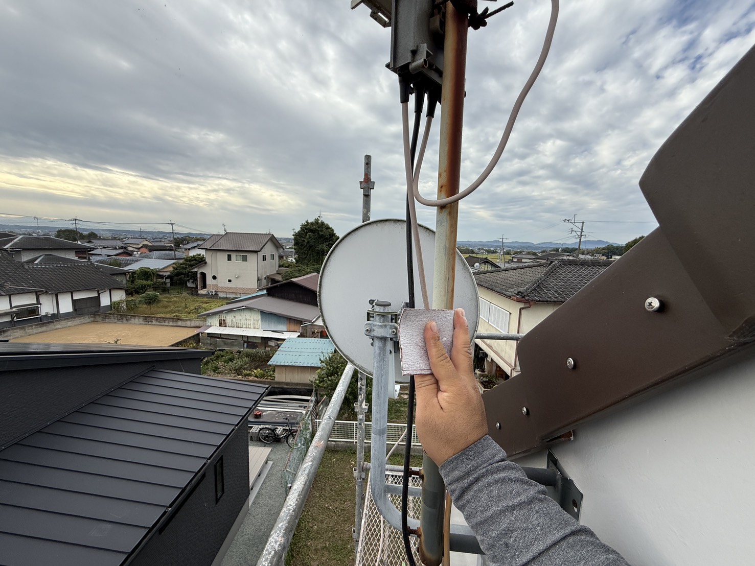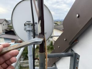 屋根・テレビアンテナ・センター柱の施工:しっかりケレン処理を行います。
