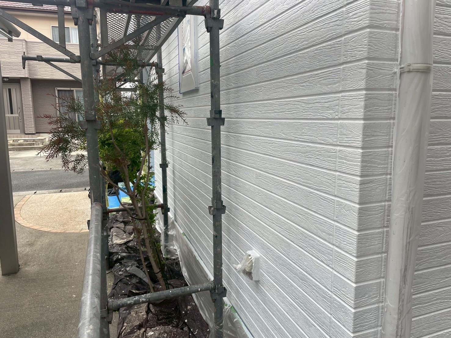 本日の作業は、外壁・追加施工箇所の仕上げ作業確認です。