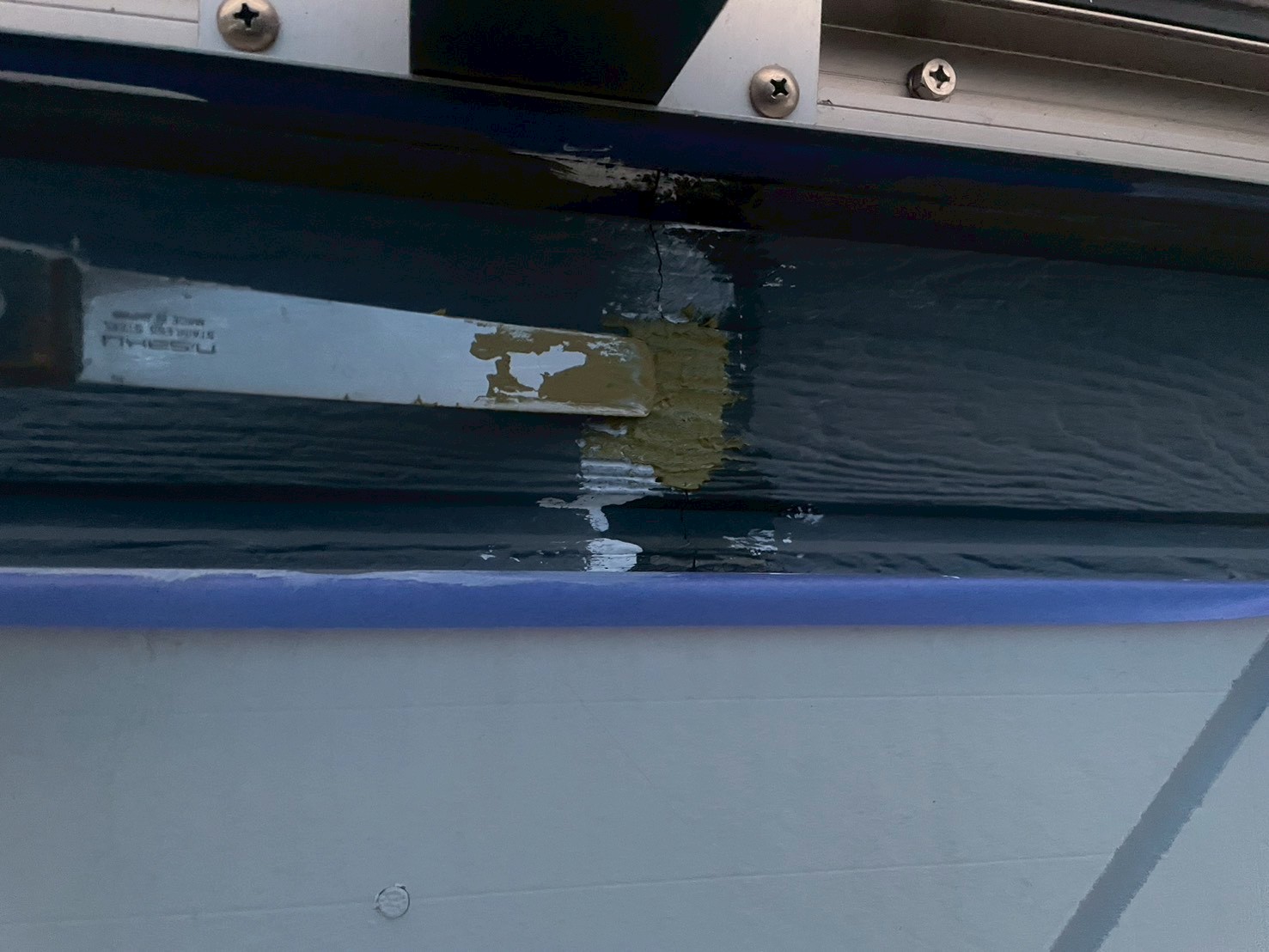 外壁・テラス下壁面部・割れ補修、板金パテ(ポリパテ)の補修を行いました。