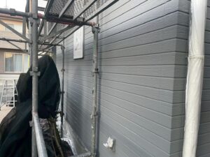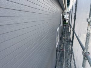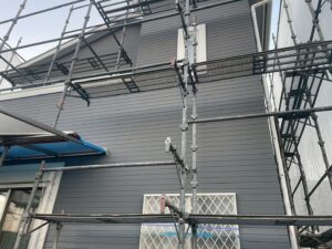 本日の作業は、外壁・上塗り:特殊セラミック ガイナ 断熱遮熱塗料・確認仕上げの施工です。